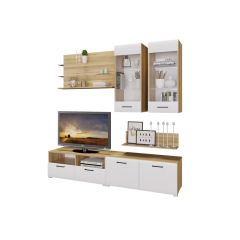 Стенка НЕНСИ 3 (Крафт золотой/Белый глянец)