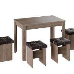Состав изделий в наборе: Стол - 1шт., Табурет - 4шт.