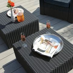 Столик Калифорния станет прекрасным дополнением Вашего сада или террасы. Его легкая округлая конструкция из плетенки добавляет элегантный и стильный штрих любому комплекту кресел и стульев. Легко превратите Ваш сад или террасу в гостиную мечты на свежем воздухе. Конструкция стола из пластика устойчива против погодных условий и защищена от ультрафиолетового излучения, что отлично облегчает уход. Достаточно протереть его влажной тряпочкой - и готово.